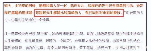 当时没人多想,现在回头看,那时候的她,大概正经历人生的转折期。 官宣之后,网友们除了心疼,更好奇一个问题:她的前夫到底是谁? 没等大家猜多久,神通广大的网友就扒出了她前夫身份。 原来,江一燕前夫的身份真是不一般......